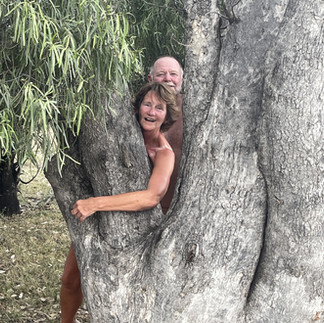 Together with nature, celebrated posing with a tree.